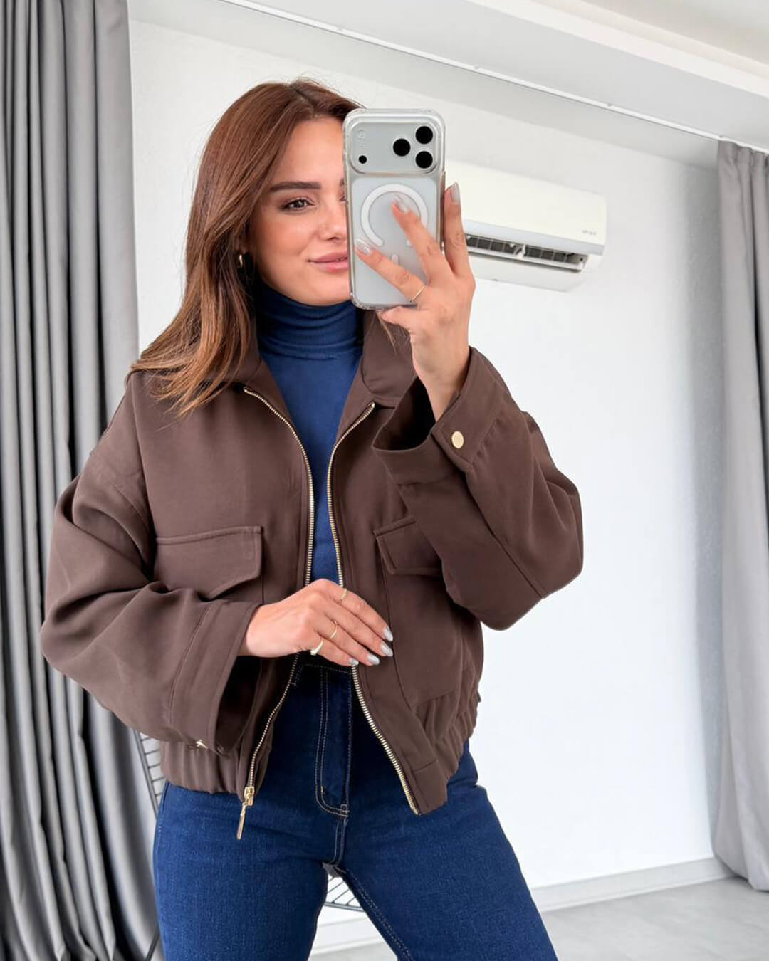 • Flattering Structure: Ribbed cuffs and hem define the silhouette, creating a tailored look that pairs well with any outfit.