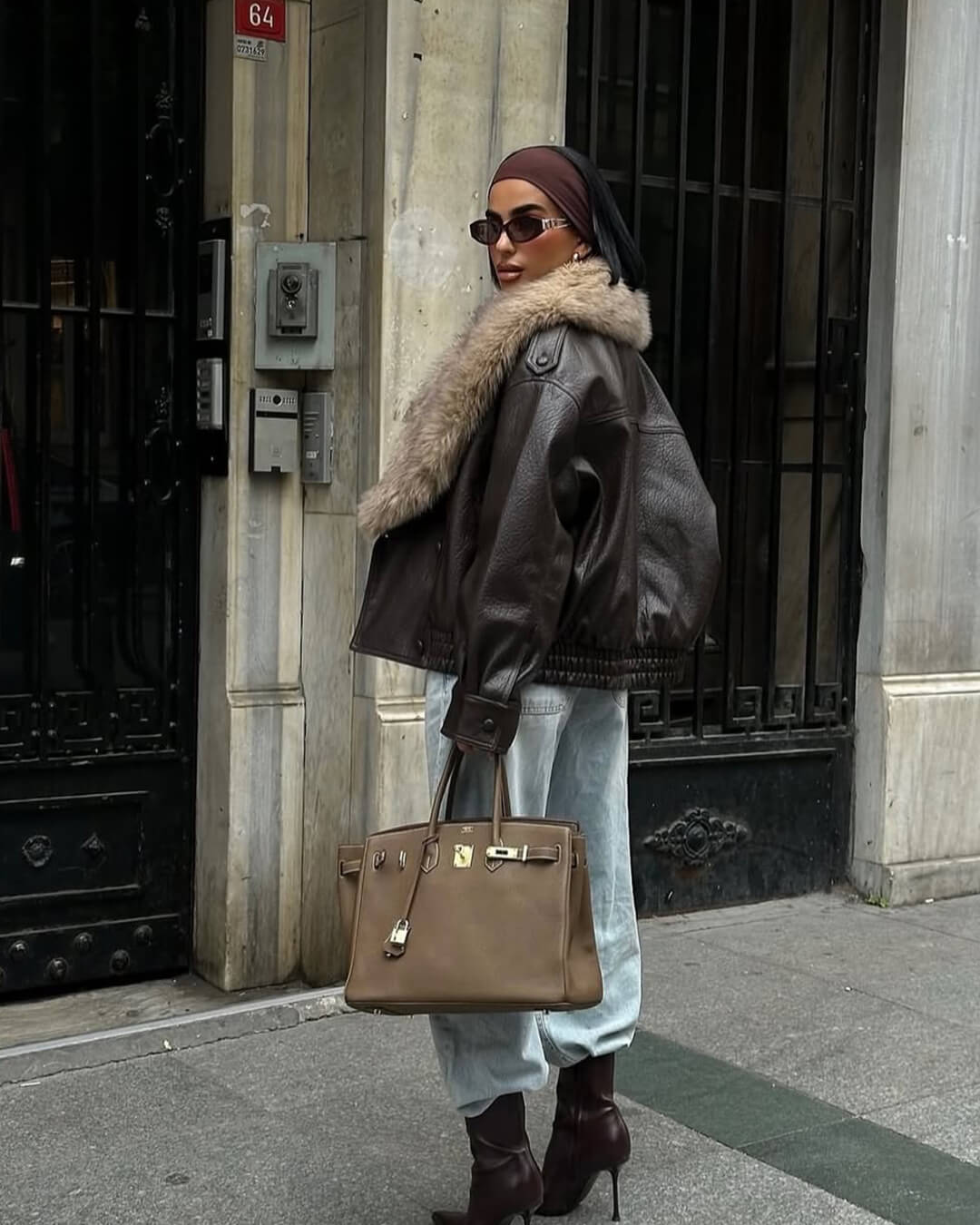 Francesca Faux Leather Jacket with Detachable Fur Collar