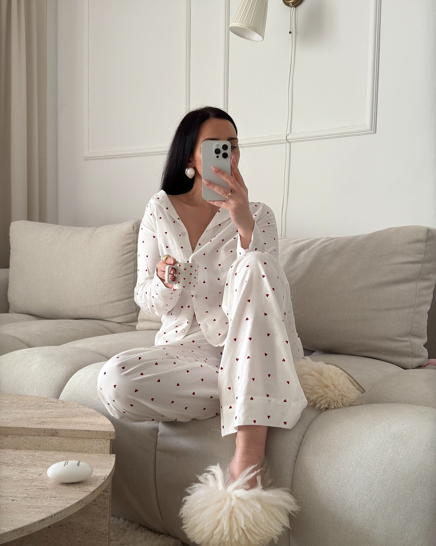 Introducing our Heart Loungewear Set, crafted from polyester for an effortless blend of style and function. This cozy loungewear features a vintage print with a button on the long sleeve, making it perfect for everyday wear. With a comfy, sweet aesthetic, it seamlessly complements your look, whether you're relaxing at home or enjoying a slow morning with a cup of coffee. Elevate your collection with this essential piece this season.